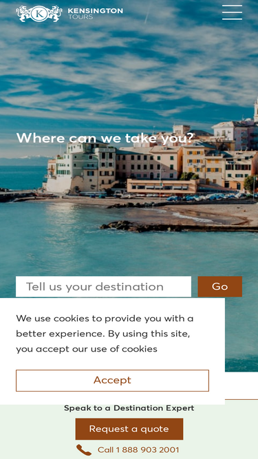 82%kensington's tailor-made journeys are carefully crafted to deliver a personalized adventure like no other. we build in extraordinary, enriching experiences curated just for you and put the best private guides at your service. the result is an experience that is more personal, more rewarding, and frankly more fun. we create an experience that changes lives. linger longer to watch the lions, explore an out-of-the-way artisan studio, choose value wise hotels for the first half of your trip so you can indulge yourself on the homestretch – this is the freedom and flexibility only possible on a custom tour. and these are the experiences that transform both the trip and the traveler. whether you are traveling as a couple, with your family or a group of friends, kensington’s experienced staff will custom tailor a tour to match your travel style, your passions, and your pace. about us » read more »