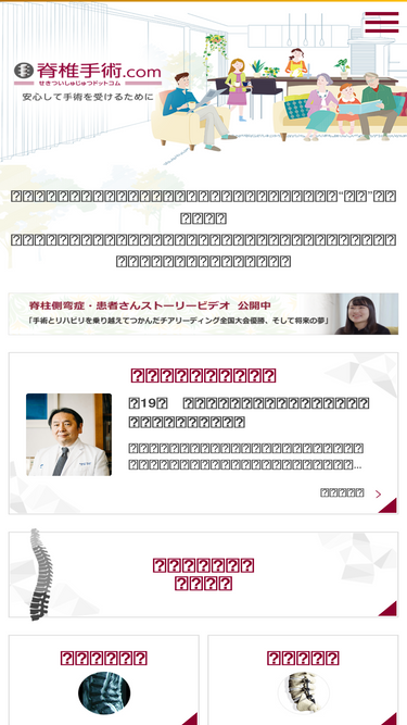 81%脊椎の病気にお悩みの方へ向けた、脊椎疾患と手術方法の情報サイトです。脊椎手術を相談できる医療機関の検索、専門医師のコラムやイベント情報を発信しています。
