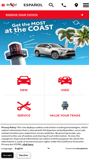 83%west coast toyota offers a hassle free car buying experience with a vast selection of new toyotas as well as quality used cars at competitive prices. shop our inventory and schedule service online today.