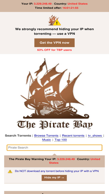 83%The Pirate Bay est le site BitTorrent le plus fiable où vous avez la garantie de trouver et de télécharger de la musique, des jeux, des films, des émissions, des applications 100 % originaux, et bien plus encore.