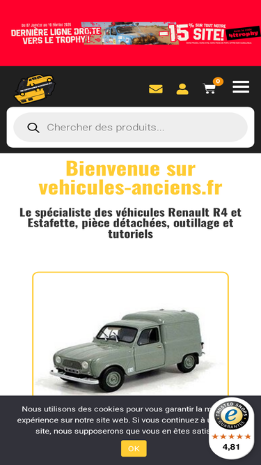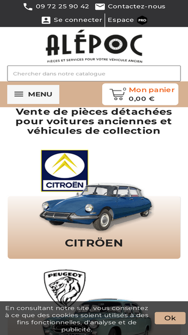 100%Boutique en ligne de pièces détachées pour véhicule ancien et de collection, Renault, Peugeot, Citroen et Simca