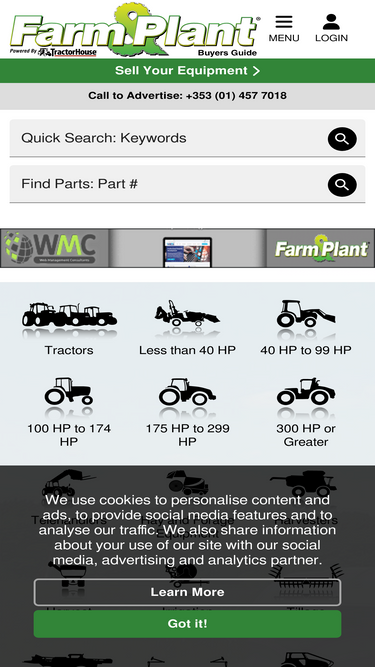 86%Farm And Plant Ireland is the go-to source for buying and selling new & used Farm Machinery. Buyers can find a full range of Tractors, Less than 40 HP, 40 HP to 99 HP, 100 HP to 174 HP, 175 HP to 299 HP, 300 HP or Greater, Telehandlers, Hay and Forage Equipment, Harvesters, Harvest Equipment, Irrigation Equipment, Tillage Equipment, Spreaders & Sprayers, Planting Equipment, Specialty Crop Equipment, Manure Handling, Ag Trailers, Lawn Mowers, Utility Vehicles, Farm Machine Parts, Ag Components and Attachments, and more at Farm And Plant Ireland