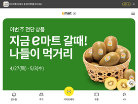 89%대한민국 1등 할인점 이마트! 국내 최초의 할인점으로서 고객의 행복한 라이프 스타일을 제안합니다. 이마트 점포의 휴점일, 고객님의 생활을 바꿔드릴 수 있는 상품 소개, 쇼핑행사, 이벤트 등의 유용한 정보를 제공합니다.