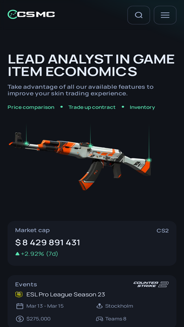 71%Skinport is the easy-to-use skin marketplace for Counter-Strike 2 items that allows you to buy and sell Counter-Strike 2 skins for real money. Easy, trusted and secure!