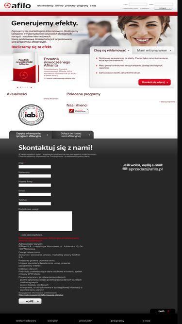 84%afilo.pl - sieć programów partnerskich, z reklamodawcami rozliczamy się za efekt, witrynom oferujemy dodatkowe przychody. reklamuj się z nami i dołącz do naszej sieci afilonet.