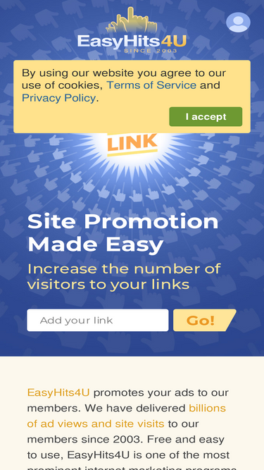 EasyHits4U.com - massive traffic exchange. 1:1 exchange ratio. Get unlimited visits to your site. It's all absolutely FREE
