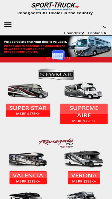 sporttruckrv is proud to be your premier renegade rv dealer, located in chandler, az, and fontana, ca.