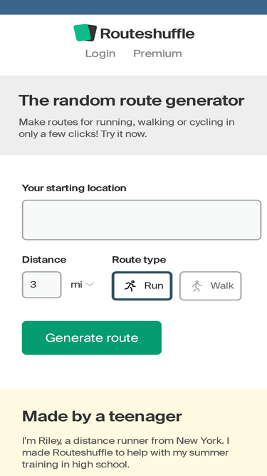 86%generate random routes for running, walking or biking instantly. enter your starting location and the number of miles or kilometers you want your route to be.
