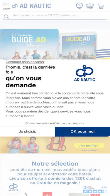 92%Numéro 1 de la vente en ligne d'équipements et de produits d'entretien pour bateaux, équipement plaisance et nautisme - AD NAUTIC
