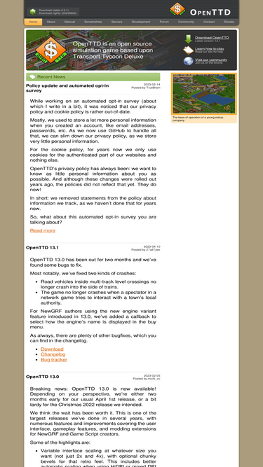 92%an open source simulator based on the classic game transport tycoon deluxe. it attempts to mimic the original game as closely as possible while extending it with new features.