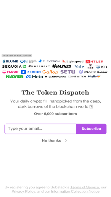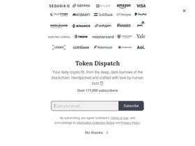 86%Your daily crypto fill, from the deep, dark burrows of the blockchain. Handpicked and crafted with love by human bots 🤟. Click to read Token Dispatch, a Substack publication with hundreds of thousands of subscribers.