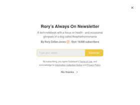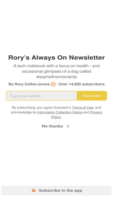92%a tech notebook with a focus on health. click to read rory’s always on newsletter, by rory cellan-jones, a substack publication with tens of thousands of subscribers.