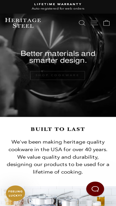 82%Heritage Steel is a family-owned craft manufacturer of fully clad stainless steel cookware based in Clarksville, TN. We have over 40 years experience building specialty cookware in the USA and are dedicated to equipping home cooks with durable, reliable cookware that inspires great cooking and lasts for generations.