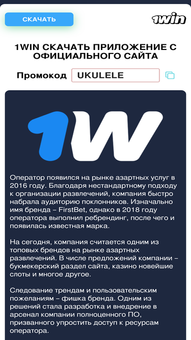 70%Информация о приложении и как скачать 1win на Андроид или IOS устройства с официального сайта 1вин прямо сейчас.