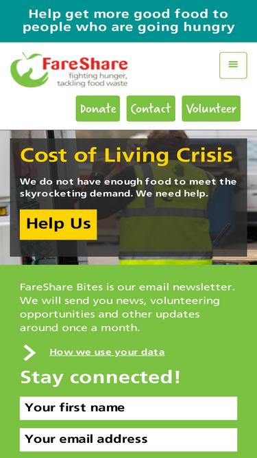 80%At FareShare, we save good food from going to waste. We redistribute surplus food from some of the UK’s top food companies to nearly 9,500 charities and community groups. If your organisation uses food to support people, then you can sign up to receive food too.We offer two options for getting food – a paid for service with a FareShare Community Food Membership or the opportunity to collect free surplus food from your local supermarket through FareShare Go.