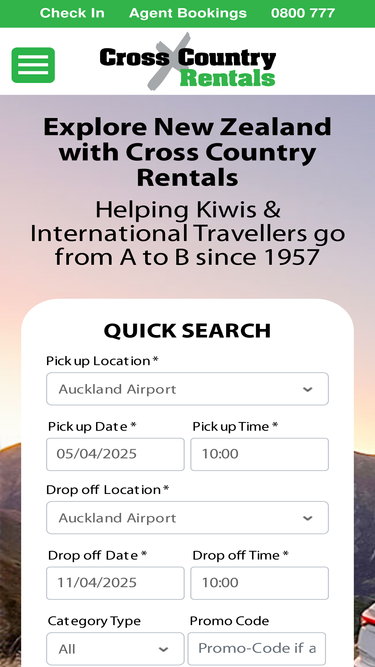 85%Rent a car in NZ with Cross Country Rentals for top service.