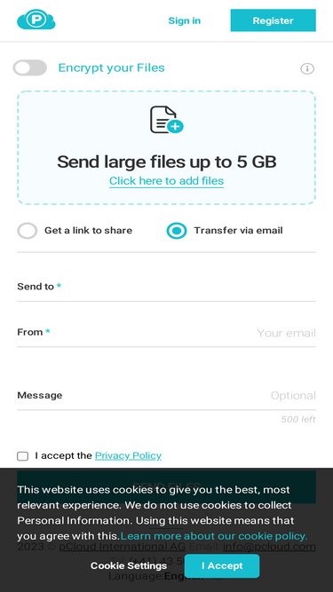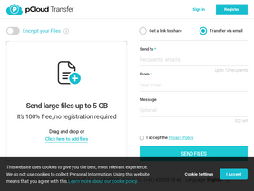 85%With pCloud Transfer you can send large files to anyone, no registration needed!