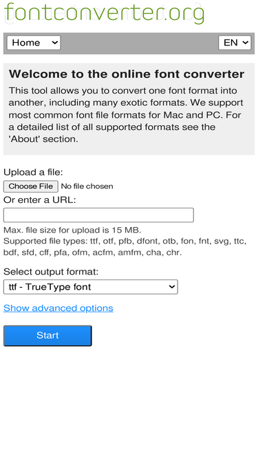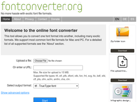 92%The free font file converter. Supports various formats like TTF, EOT, OTF, WOFF and SVG.