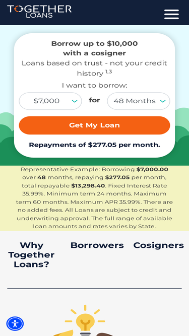 Enter your loan amount, purpose, and personal details. Start your Together Loans application with a cosigner in minutes.