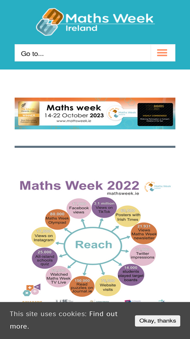 88%Maths Week will take place from 11 - 29 Oct. 2025. We will have events and activities for all the family. Visit MathsWeek.ie for more info MATHS WEEK IRELAND
