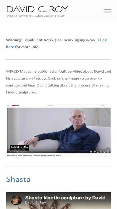 98%Kinetic sculptor David Roy and his wife. Marji blog about kinetic sculpture in general and David Roy's art work in depth.