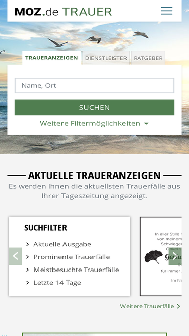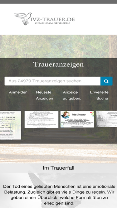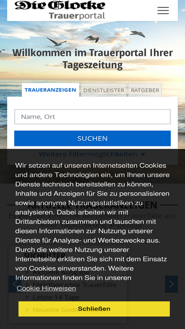 Finden Sie hier Traueranzeigen, Todesanzeigen und Beileidsbekundungen aus Ihrer Tageszeitung oder passende Hilfe im Trauerfall. Jetzt online gedenken.