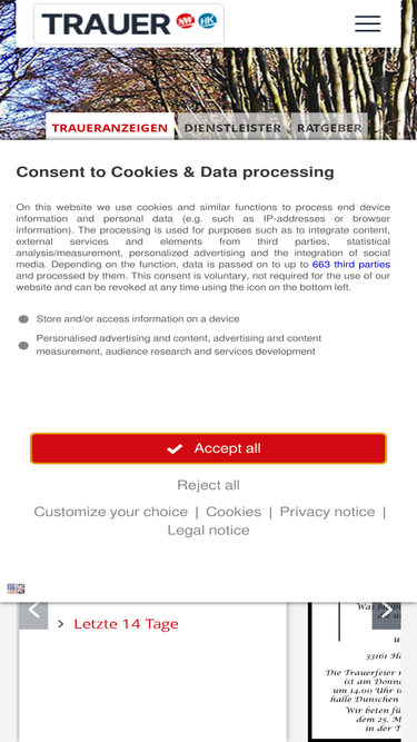 82%Finden Sie hier Traueranzeigen, Todesanzeigen und Beileidsbekundungen aus Ihrer Tageszeitung oder passende Hilfe im Trauerfall. Jetzt online gedenken.