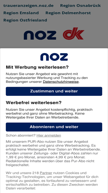 95%Finden Sie hier Traueranzeigen, Todesanzeigen und Beileidsbekundungen aus Ihrer Tageszeitung oder passende Hilfe im Trauerfall. Jetzt online gedenken.