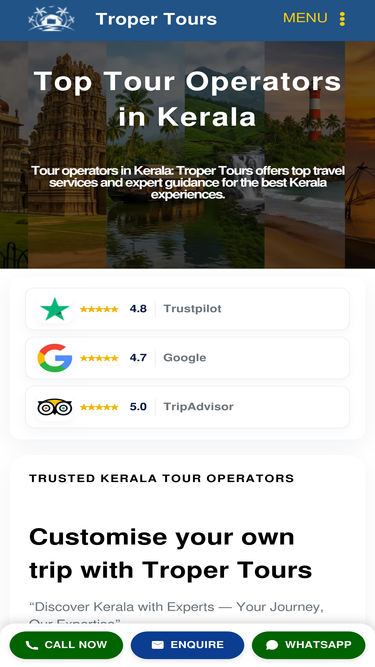 97%Discover top Tourist Places in Kerala, from hills to backwaters. Explore beaches, waterfalls, and cultural gems of God’s Own Country.