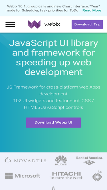 83%Webix UI is a JavaScript library with more than 99+ UI HTML based JS widgets, components, controls and jQuery, Angular, React, VueJS frameworks integration. Download UI framework for free