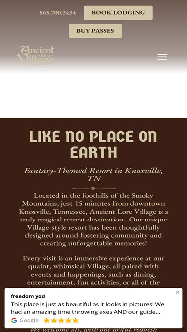 100%Ancient Lore Village of Knoxville, TN is a resort and event venue specializing in weddings, corporate retreats, private parties, & special celebrations.