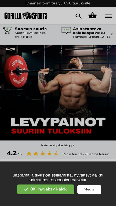Gorilla Sports on Suomen suurin kuntosalitarvikkeisiin keskittynyt verkkokauppa. Valikoimamme kasvaa viikoittain uusilla tuotteilla.