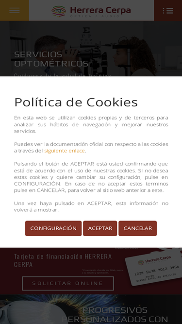 69%En Herrera Cerpa, ÓPTICA/AUDIO nos dedicamos al cuidado de la salud visual y auditiva, venta de gafas graduadas, gafas de sol, lentes de contacto, audífonos y sus accesorios.