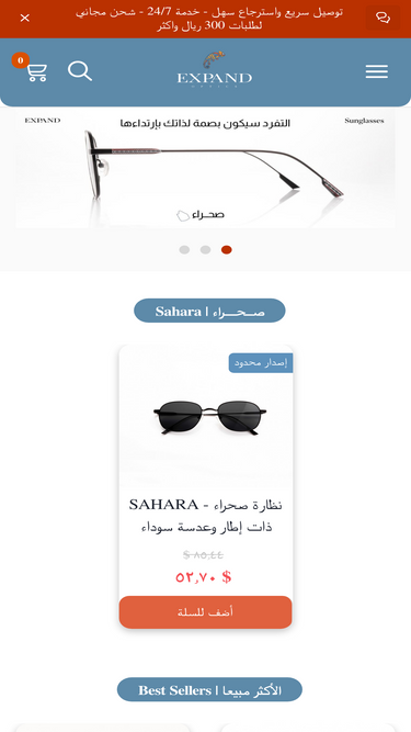 85%متجر تفصيل نظارات اكسباند يقدم نظارات طبية وشمسية حسب الطلب بجودة عالية وعدسات أصلية وخيارات متعددة لتناسب ذوقك واحتياجاتك البصرية بدقة