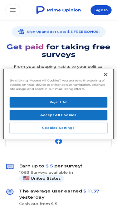 96%Welcome Prime Opinion. Sign in to access surveys, earn rewards, and share your opinions with top brands