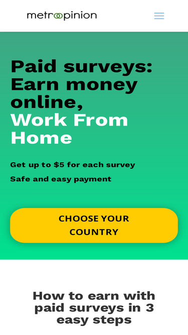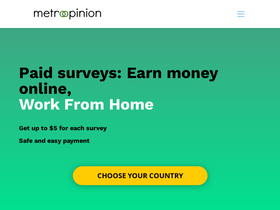 76%¿Quieres ganar dinero en línea? Con las encuestas pagadas de MetroOpinion puedes trabajar desde cualquier lugar. ✅ Se le pagará a través de PayPal. ✅