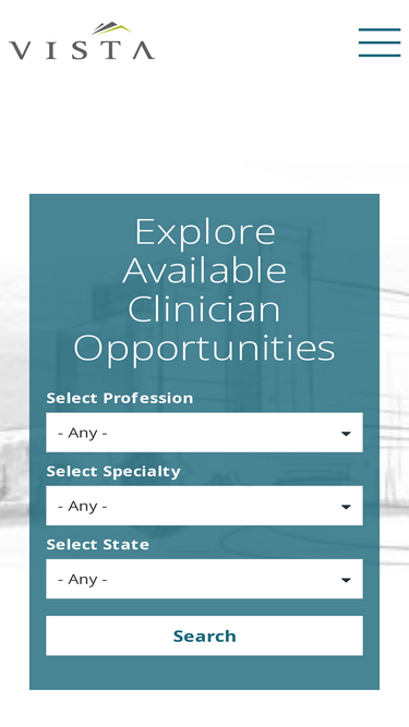 100%VISTA is your healthcare staffing partner offering Locum Tenens and Permanent opportunities for Physicians, NPs, PAs, & CRNAs!