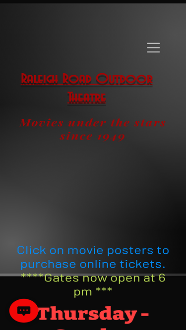 97%Since 1949 this drive-in theatre has been serving guests from age 1 to 101. At the Raleigh Road Outdoor Theatre we strive to provide the latest movies at a reasonable price for all ages. Open every weekend. Hope to see you watching movie under the stars.