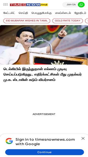 Tamil News (தமிழ் செய்திகள்): அரசியல், தேர்தல், வணிகம், விளையாட்டு, பொருளாதாரம், பொழுதுபோக்கு, உள்ளூர் செய்திகள் என இன்னும் பல்வேறு விதமான சமீபத்திய மற்றும் பிரேக்கிங் நியூஸ் செய்திகளை உடனுக்குடன் இந்த பக்கத்தில் காணுங்கள். Get Today's Breaking News in Tamil and latest updates on Sports, Politics, Entertainment, Business, Economy, Current Affairs and much more from India and around the world at Times Now Tamil (Times Now Seithi).