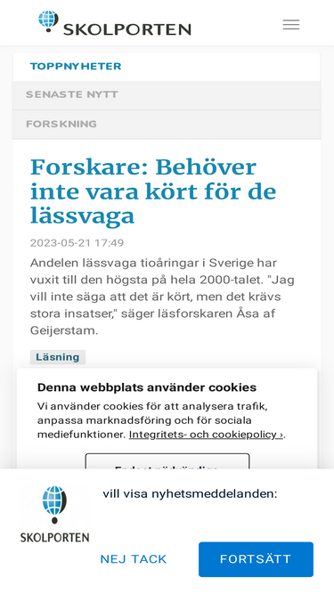 89%Skolportens mål är att underlätta din vardag och svara mot de önskemål och behov som du har i din profession oavsett om du är pedagog, rektor eller skolchef. Genom att använda Skolportens olika kanaler försäkrar du dig om att du får tillgång till dagsfärska skolnyheter, viktig kompetensutveckling och aktuella forskningsresultat.