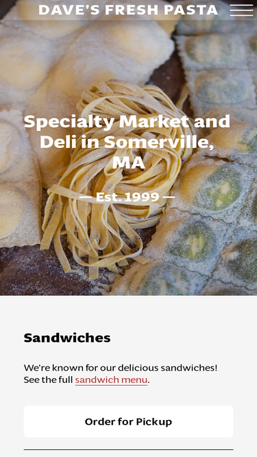 99%A specialty grocer in Somerville, MA. We're known for our fresh pasta and incredible housemade sandwiches. We believe in supporting local businesses, most of our groceries, produce and cheeses are from New England Producers.