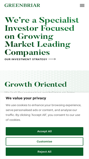 97%Greenbriar is a specialist investor focused on growing market leading companies where we can partner with management to execute a specific value creation plan.