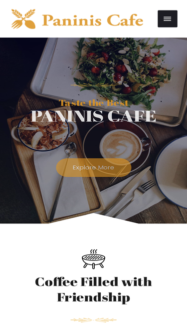 83%Taste the Best PANINIS CAFE Welcome to our fine dining and take away restaurant. We hope you have an amazing time with good food and music. Browse our website for our exclusive menu and offers. Explore More Coffee Filled with Friendship Our Delicious Story Come visit us with your friends in a spacious Our special … Home Read More »