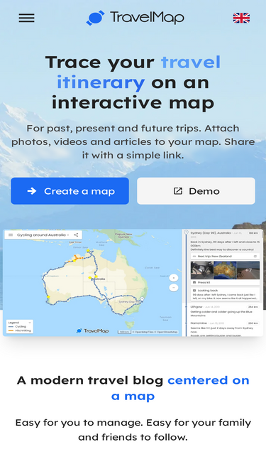 73%Create a free travel blog with an interactive Google Map. TravelMap lets you map the route from your travel itinerary to show countries and places visited.