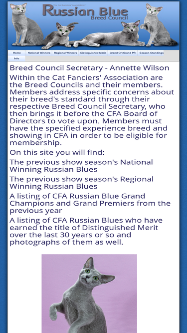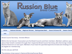 53%website for the cat fanciers' association russian blue breed council. standings, awards, and photos of winning russian blue cats since 1999.
