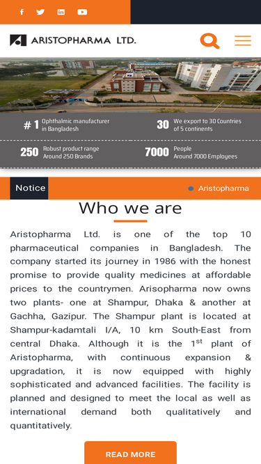 96%aristopharma ltd. is one of the top 10 pharmaceutical companies in bangladesh. the company started its journey in 1986 with the honest promise to provide quality medicines at affordable prices to the countrymen.