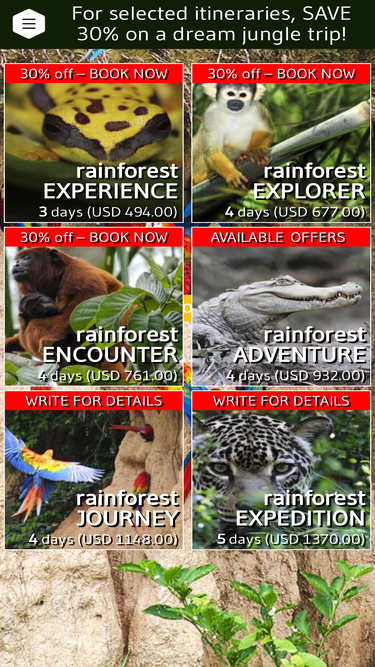 amazon rainforest excursions, ecolodge full board accommodation, guided tours in our private conservation area and tambopata national reserve