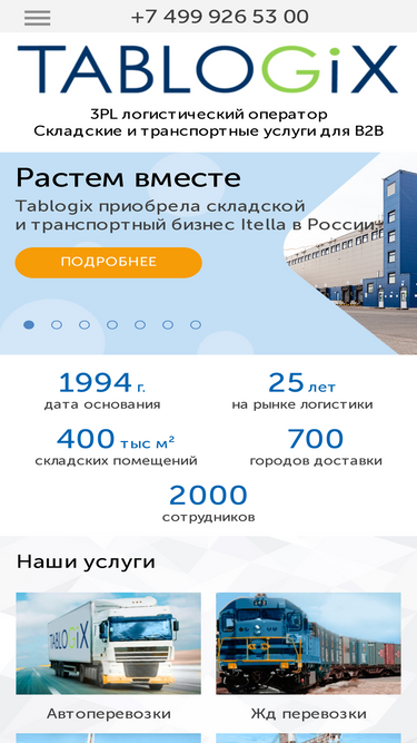 68%3PL оператор Tablogix - надежный поставщик всего комплекса логистических услуг, включая услуги складского ответственного хранения и грузоперевозок