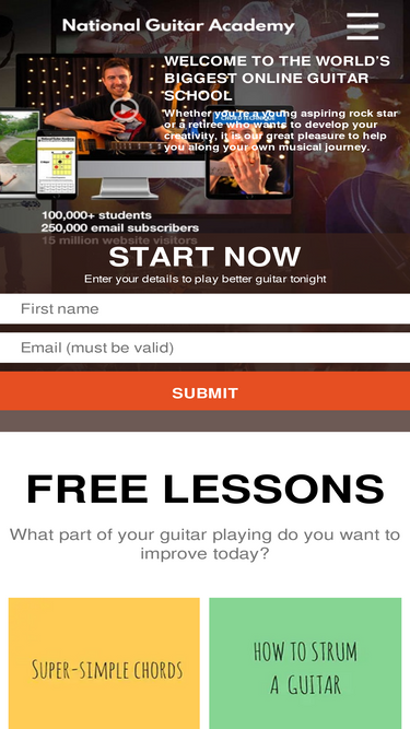 92%The best online guitar lessons are free! Learn to play guitar with fast, fun, and effective courses and song lessons for beginners and up! Community support!