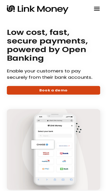 74%link money offers a low-cost, fast, and secure payment method powered by open banking technology. book a demo now and start accepting payments with link money today.